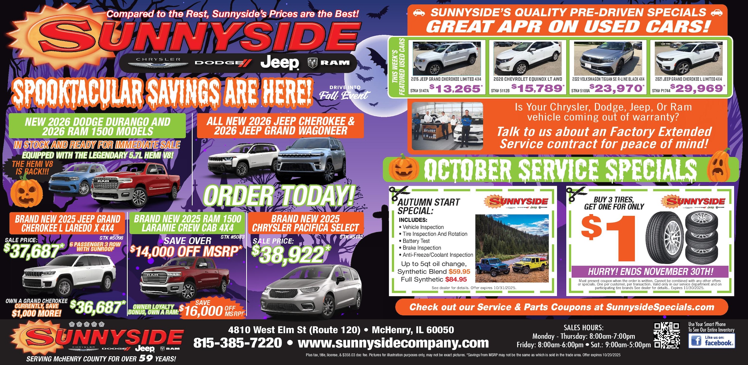 Have you been searching hard for a great deal on a new car, truck, or SUV? Sunnyside Chrysler, Dodge, Jeep, and Ram in McHenry, IL is here to help with our weekly car specials! Take a look at our special offers that make taking home a new car, truck, or SUV more affordable than you think. Does one of our specials pique your interest? Whether it's a hardworking Ram 1500 or an off-road ready Jeep, you'll find a great deal at our dealership. Remember, these offers are updated every week, so be sure to act fast before you miss out on one of our great deals!